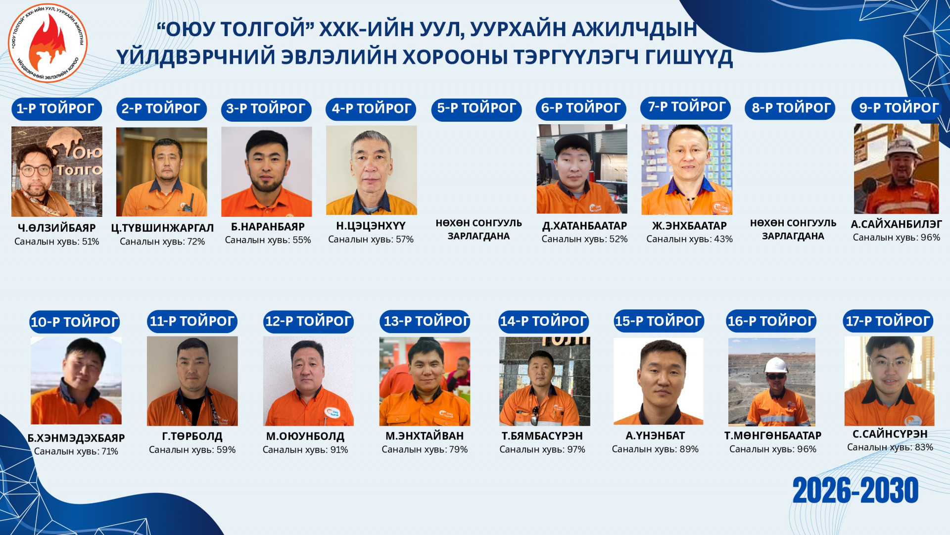 М.Оюунболд12-р тойрог, Гүний уурхайн ҮА-ны нөөц ба системийн хэлтэс Ахлах техникч Утас: 99046871